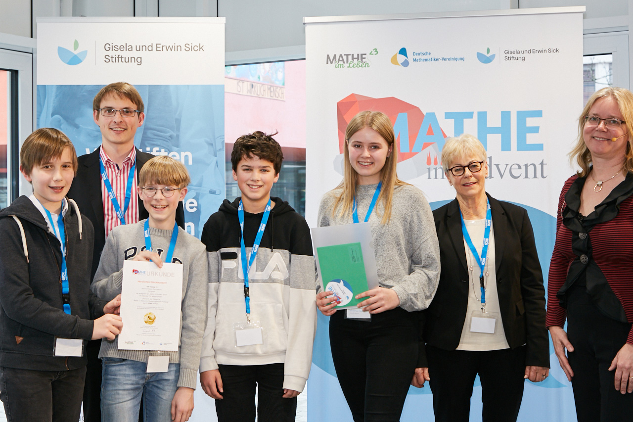 „Mathe im Advent“ ist ein bundesweiter Wettbewerb, bei dem Schülerinnen und Schüler je nach Jahrgangsstufe einen Adventskalender für die Klassen 4-6 oder 7-9 öffnen können. Dabei gilt es täglich eine Multiple-Choice-Aufgabe zu lösen. Zudem gibt es an einigen Tagen noch eine Zusatzaufgabe zu bearbeiten. Die Teilnahme ist im Einzel oder als Klasse möglich. Dank der Gisela und Erwin Sick Stiftung können im gesamten Regierungsbezirk Freiburg alle interessierten Klassen kostenlos an diesem Wettbewerb teilnehmen. Das tat auch die Klasse 7d. Dabei schnitt sie als Team so gut ab, dass sie sich fortan bei Mathe im Advent „Beste 7. Klasse im Regierungsbezirk Freiburg“ nennen darf. Bundesweit belegte die Klasse einen beachtlichen 22. Rang.